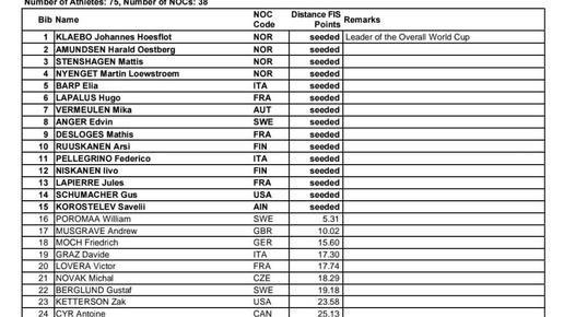 🎿 Олимпиала -2026 Валь-ди-Фьемме Италия 8 февраля Скиатлон. 20 км. Мужчины AIN Савелий Коростелев под 15-ым номером МСК