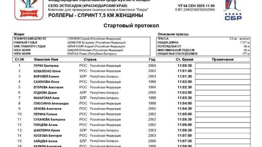 🖥 Стартовый протокол женского спринта на Кубке Содружества по биатлону