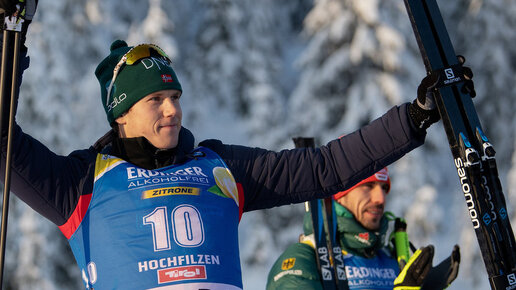 Великолепная стрельба, финиш в тренировочном темпе, прыжок и поклон тренеру от Кристиансена в эстафете Хохфильцена