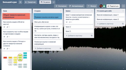 Что такое база знаний? Этот центральный элемент разработанной мной экосистемы виртуальной жизни, которая охватывает все персональные носители и хранители информации. Это наглядный каталог информации. Или витрина. Или внешний цифровой мозг. Назвать можно как угодно. Суть одна – это место входа в вашу цифровую жизнь, центр паутины, из которого по ссылкам как по нитям можно попасть в любой ее конец. Зачем нужна база знаний? Виды сервисов, в которых можно создать персональную базу знаний: Канбан, вернее, каМбан – это по-японски вывеска или рекламный щит...