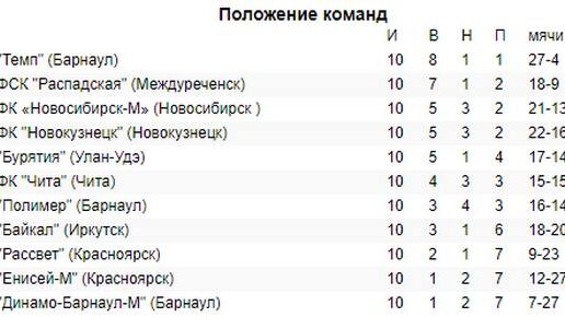 Подведены итоги первой половины турнира 7 июля матчем в Улан-Удэ завершился первый круг игр чемпионата Сибирского и Дальневосточного федеральных округов по футболу среди мужских любительских команд («третья лига»). Как сообщал «Байкал-Daily», футбольный клуб «Бурятия» победил со счётом 2:1 команду «Динамо-М» из Барнаула. Все 11 участников чемпионата провели по 10 игр. Первое место уверенно занимает с 25 очками «Темп» из Барнаула, которому 30 июня «Бурятия» в гостях проиграла с разгромным счётом 4:0...