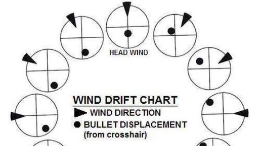 Сегодня хотел бы поговорить про ветровые поправки для дозвуковых воланчиковых пуль. В частности в статье будет вестись разговор про калибр 4,5мм и пулю весом 0,67г JSB Exact Heavy или т.н. "хевики" и стрельбе на дальние и сверхдальние дистанции для этого калибра, а именно 50, 80, 91м. Автор длительное время стреляет этими пулями и нарисовались кое какие наработки на тему. В частности поговорим мы вот про такую диаграмму, которую вы можете встретить в куче статей и монографий, где так или иначе говориться про ветер...