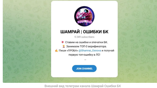 РАБОЧИЙ МЕТОД ЗАРАБОТКА ШАМРАЙ | Ошибки БК – это канал в телеграмме с прогнозами, которые основаны на неправильно выставленных коэффициентах. Каппер Шамрай @Shamrai_Osnova по ставкам ведет свою подробную статистику и делится отзывами участников VIP клуба. Анализ показал, что объективных доказательств высокого процента выигрышей нет, а в интернете о проекте можно увидеть только отрицательные отзывы. Основной поток жалоб идет на низкую проходимость и слив депозитов. Что известно о портале ШАМРАЙ...