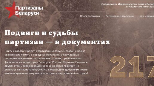 Еще один замечательный открытый источник - https://partizany.by/ Это специальный проект Издательского дома «Беларусь сегодня» и Национального архива Республики Беларусь, созданный "с целью увековечивания памяти белорусских партизан, сражавшихся против нацизма в годы Великой Отечественной войны, патриотического воспитания молодежи, повышения гражданско-патриотического уровня населения, активизации поисковой работы". Информационный портал включает индивидуальную картотеку партизан и подпольщиков,...