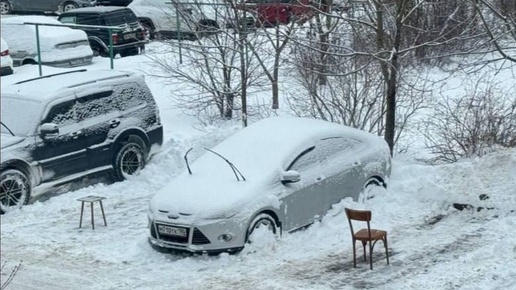 «Стул на асфальте — не бронь»: в Орехово-Зуеве жильцы многоэтажки захватывают парковочные места