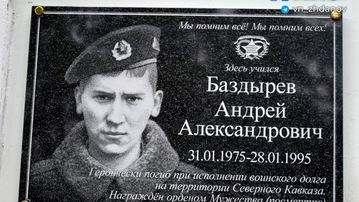 В Старом Осколе Белгородской области открыли мемориальную доску в честь Андрея Баздырева. Она появилась на стене политехнического колледжа Старооскольского технологического института им. А. А. Угарова в память о выпускнике. Срочную службу молодой человек проходил в 61-й отдельной Киркенесской Краснознаменной бригаде морской пехоты Северного флота, участвовал в боевых действиях на Севером Кавказе. 28 января 1995 года во время освобождения Грозного погиб в бою, не дожив трех дней до своего 20-летия...