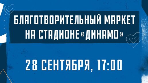 Благотворительный маркет «Динамо» 💙 28 сентября за час до матча с «Зенитом-2» на стадионе «Динамо» каждый желающий может сделать пожертвование и помочь пятилетней Кати Коскиной, подопечной фонда «Настенька» На маркете будут представлены редкие вещи от друзей Динамо и наших футболистов:...
