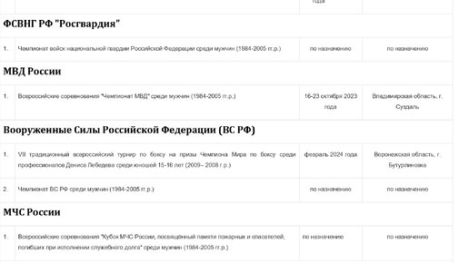 Соревнования по боксу в Москве - Расписание на 2024 год
