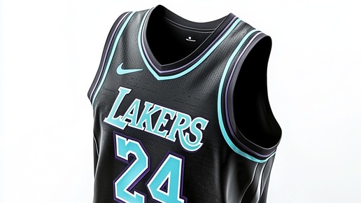 Создано на основе запроса: 3D rendering animation of individual baskbetall Black jersey with tiffany blue number 24 and "LAKERS" on the