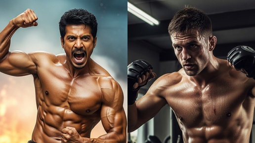 На одном полюсе — ослепительный мир кинематографа. Здесь на экране появляется актёр — воплощение мощи и бесстрашия. Он двигается с грацией, эффектно падает, спасает мир, отправляет в нокаут двадцать человек за минуту, не моргнув глазом. Публика в восторге, комментарии в социальных сетях кипят от восхищения его "крутостью". Это мир иллюзий, где каждый удар выверен, каждое движение просчитано, а опасность сведена к минимуму. На другом полюсе — суровый мир бойца. Он находится в пыльном, пропитанном потом зале...