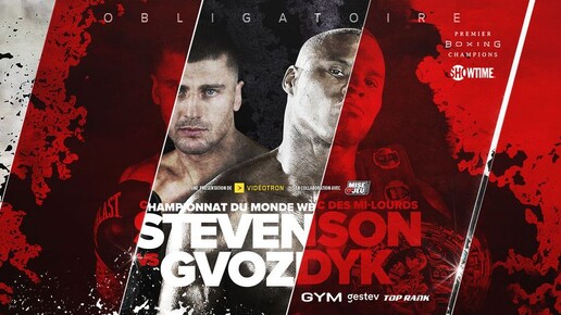 Вторым знаковым боем боксёрского вечера от Showtime станет канадо-украинское противостояние в полутяжёлом весе. В Квебеке (Канада) на арене "Centre Videotron" местный чемпион WBC Адонис Стивенсон сразится с "временным" чемпионом WBC из Украины Александром Гвоздиком. Этот бой станет ко-мейн ивентом трансляции, в мейн ивенте же Деонтей Уайлдер в Лос-Анджелесе отбоксирует с Тайсоном Фьюри. Интересно, что для 41-летнего Стивенсон (29-1-1, 24 КО) это будет лишь первая обязательная защита пояса. А владеет он им с лета 2013 года, то есть уже 5 с половиной лет...