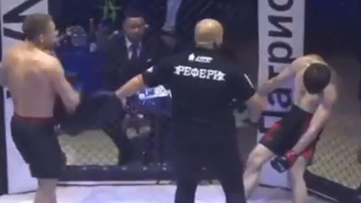 В России боец ММА отправил соперника в стоячий нокаут. Видео