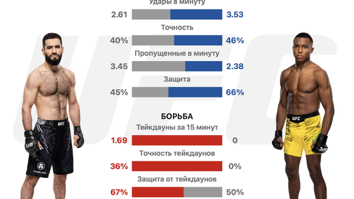 Майрон Сантос (17–1–0) — настоящий ураган в октагоне: Мухаммад Наимов (13–3–0) — расчётливый стратег: Вывод: Сантос задаст высокий темп с первых секунд, используя преимущество в антропометрии и огневой мощи. Наимову придётся выжидать момент для контратаки, избегая разменов на дистанции. Здесь ситуация кардинально меняется! Наимов: Сантос: Вывод: если Наимову удастся сократить дистанцию и перевести бой в партер, Сантос окажется в зоне риска...