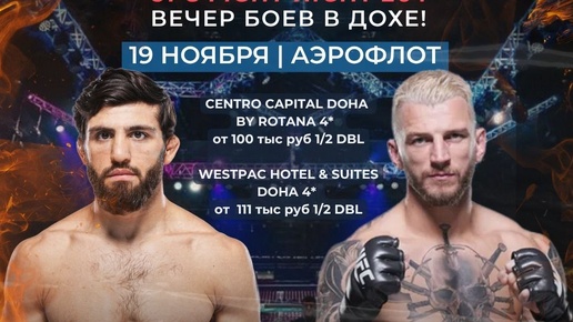 UFC Fight Night 264 - вечер боев в Дохе! 22.11🇶🇦 🛫ВЫЛЕТ 19.11 чартер Аэрофлот на 7 ночей. ‼️ Цена за 1го при 2х местном размещении 🏨Centro Capital Doha By Rotana 4* на двоих на ВВ за 100 тыс руб 1/2 🏨Westpac Hotel & Suites Doha 4* на двоих на ВВ за 110 тыс руб 1/2 🏨 Waldorf Astoria Doha West Bay 5 на двоих на ВВ за 158 тыс руб 1/2 🏨The Ritz-Carlton, Doha 5*на двоих на...