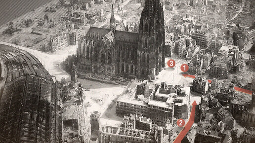 Уникальная кинохроника Немного отступая, хотелось бы отметить, насколько уникальную кинохронику смог запечатлеть кинооператор американского Сигнального Корпуса 1-ой армии, Джим Бейтс. Интересен снятый им документальный фильм реальными уличными боями в Кёльне, но настояющую славу материал получил благодаря киноленты, где происходит боестолкновение новейшего американского танка М26 «Першинг» и немецкого Panzerkampfwagen V «Panther». Сложившаяся ситуация Судьба Третьего Рейха очевидна была предрешена...