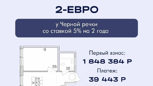 Выгодный вариант: проект у Черной речки Ищете квартиру, чтобы выгодно вложить средства или ищете квартиру для жизни? У Черной речки есть свежий проект, где можно взять двухкомнатную с отделкой «white box» и минимальным первым взносом. ↖️ Что важно знать — 2‑евро, 34,7 м², сдача дома — 2025 год — Метро в пешей доступности, рядом — Петроградский район — Можно сдавать или жить самому: инфраструктура, транспорт и спрос на...