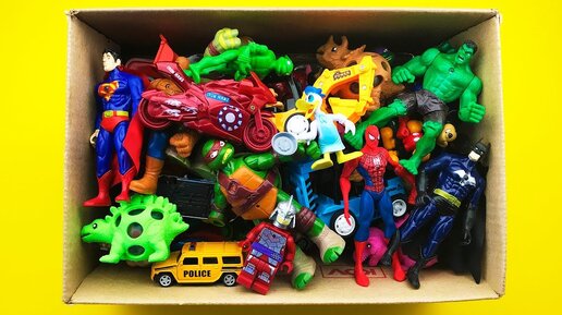 Box Full of Toys Cars, Marvel, Action Figures, Police Cars, Mickey Mouse TMNT Slime Dinosaurs Kids