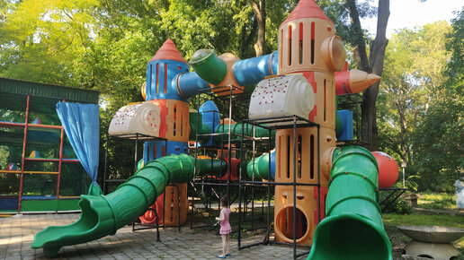 Этот уникальный работающий парк выглядит совершенно заброшенным. Мечта любителей заброшки времен СССР, идеальное место для ностальгии по советскому детству. Находится он, что примечательно, посреди жилых застроек города, который можно назвать вечно живым, настолько он древний. Это Керчь, ему около 27 веков. Это самый древний город РФ. И хотя парку, по сравнению с ним, всего ничего – менее 50 лет, выглядит он так, словно пережил все то же самое, плюс аварию на АЭС. Гагаринский парк в Керчи (не путать с паком им...
