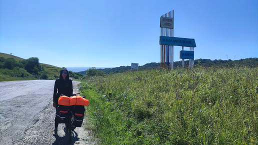 Утречко. А мы в лесу, на берегу реки Джегута. Вставать пораньше на рассвет смысла особого не имела — всё равно здесь, среди деревьев и холмов, ничего не видно. Так что позволили себе поспать. Выбрались из нашего лежбища на дорогу, и я как-то неудачно вывернула руль — и просто так, на ровном месте, шлепнулась на потеху всей компании. Я человек суеверный, но решила понадеяться, что это не какой не знак, и дальше всё будет нормально...Первый десяток километров дорога была неплоха: хороший асфальт, практически нулевой автотрафик и мягкий подъём...