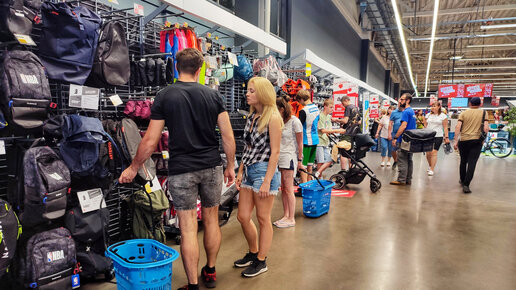 Самым большим Декатлоном считается магазин в Алтуфьево. Это отдельно стоящее здание на МКАД, рядом Ашан и Леруа Мерлен, по соседству большой торговый центр Весна. Там больше товаров и шире ассортимент. В то время, как в других Декатлонах было пусто, народ скупил ВСЕ, в Алтуфьево еще был выбор. Так выглядел магазин в последний день работы. Декатлон в ТЦ Авиапарк опустошили несколько дней назад. Там даже переставили ряды, уменьшив площадь магазина. А в Алтуфьево полно всего: и носки, и кроссовки, и принадлежности для плавания, и велосипеды, и самокаты...