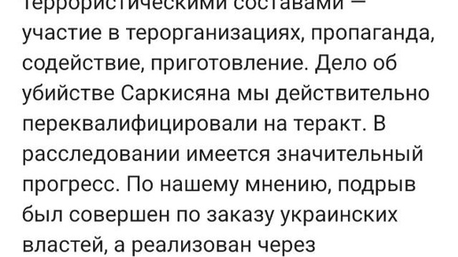 ⚡️Взрыв в ЖК "Алые паруса" в Москве, в результате которого погиб основатель добровольческого батальона "Арбат' и глава федерации бокса в ДНР Армен САРКИСЯН, был совершен по заказу украинских властей, а реализован через этнический криминалитет, и это ТЕРАКТ, - из интервью руководителя Первого управления по расследованию...