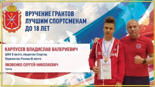 Спортсмен федерации единоборств по Боксу Владислав Карпусев получил грант в размере 100 000 рублей от Виктора Дзюбы