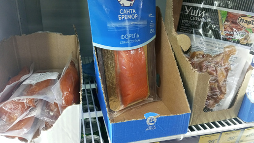 Так забавно наблюдать за тем, как совершенно случайный разговор приводит к тому, что мы идем в определенный магазин, дабы купить один конкретный продукт, а попутно находим еще и разные новинки. Шли мы, значит, домой, а тут один человек говорит: - говядина-то уже совсем дорогая стала, больше тысячи рублей вон в мясном магазине стоит, интересно, а красная рыба дороже или нет? И после этого мне так сильно захотелось бутербродов с рыбой, что я сразу сказала, что мы идем искать ее. Причем осознанно начали с "Красное&Белое", т...