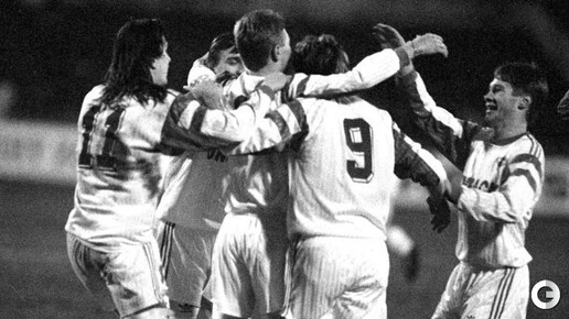 Хотя по идее должно было быть наоборот. Красно-белые легенды черно-белого стадиона. Арена откроется в совершенно новом облике примерно через год. По крайней мере, так гласят официальные источники. Хорошо, когда есть такой красивый стадион. Дело за командой. ФОТО: РБК В этой заметке я бы хотел вспомнить наиболее запоминающиеся моменты, связанные с этим стадионом. Их будет три, хотя конечно же, я посещал его гораздо чаще. Но все же: три матча - и еще один скромный бонус. Слева направо Дмитрий Радченко, Федор Черенков, Валерий Карпин, Андрей Пятницкий и Дмитрий Попов...