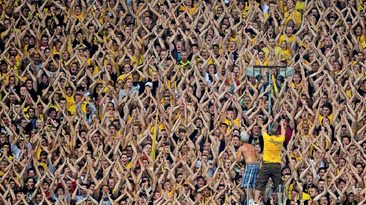9 апреля 2013-го. «Сигнал Идуна Парк», 1/4 финала финала Лиги чемпионов. Пока игроки «Боруссии» и «Малаги» выходят из коридора, на южной трибуне начинается активность. Болельщики разворачивают гигантский баннер с джокером, который через бинокль наблюдает за полем. Под ним – отсылка к 1997-му и последнему для «Боруссии» Кубку чемпионов – «По следам трофея, который мы потеряли». Телетрансляция позволяет оценить масштаб полотна – он явно высотой в девятиэтажку. Игроки тоже замечают перфоманс – они поворачивают головы влево, показывают друг другу и глазеют на баннер...