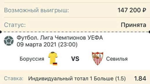 Мой прогноз на футбол 🥅 Боруссия - Севилья 9.03.21