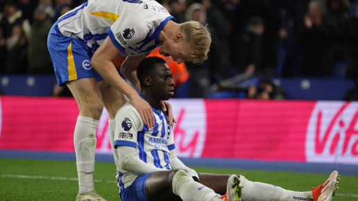 В стартовой игре 25-го тура АПЛ "Брайтон" разгромил "Челси" - 3:0! На южном побережье Англии сошлись две проблемные амбициозные команды. "Синие" на поле "Амэкс" начали с места в карьер, как и в матче Кубка Англии. Ни Палмер, ни Мадуэке не заставили вступить в игру Вербрюггена после проходов Гюсто. "Чайки" терпеливо оборонялись и ждали свой шанс. Нашли на излёте получаса игры! Вербрюгген разразился голевым пасом на Митому, который убрал со своего пути Чалобу и открыл счёт ударом из опорной зоны. Ответный гол Фернандеса справедливо не засчитали из-за нарушения правил в атаке...
