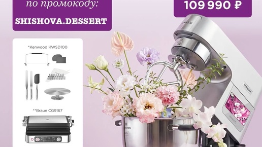 💰Экономия до 61000 рублей! ⚡️⚡️⚡️До 15 марта вы можете приобрести кухонную машину Kenwood Cooking Chef XL по суперцене — всего 109 990 рублей по промокоду 👉 shishova.dessert 👈 ‼Стоимость кухонной машины без промокода - 119 990 ‼ И это ещё не всё! Вместе с машиной вы получаете целый набор подарков: 🎁 Онлайн-курс "Кондитер с нуля" — в подарок от меня! (тариф "Я сам", с сертификатом об окончании — отдельно стоит 10 990₽) 🎁 Кондитерский сет Kenwood KWSD100 (стоимость отдельно — 10 190 ₽) 🎁 Гриль Braun Электрогриль CG9167 (стоимость отдельно — 29 990 руб...