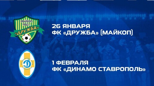 Стали известны соперники брянского «Динамо» по контрольным матчам на тренировочных сборах в Кисловодске. 26 января брянская команда сыграет против майкопской «Дружбы»; 1 февраля пройдёт матч против «Динамо Ставрополь»; а 8-го февраля «Динамо-Брянск» встретится с пятигорским ФК «Машук-КМВ»...