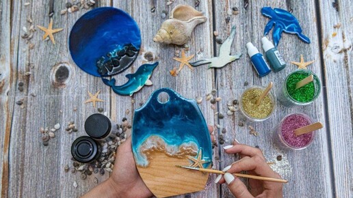 1. Украшения ✅ Браслеты и кольца, переливающиеся цветами благодаря слоям прозрачной смолы и красящих пигментов. 2. Столешницы и декоративные поверхности. ✅ Создание столешниц, полок или декоративных панелей с эффектами малахитовых узоров, природных камней или даже изображений морских глубин. 3. Картины и панно. ✅ Применение техники resin art для картин с абстрактными мотивами, плавающими линиями и яркими красками. 4. Настольные игры ✅ Изготовление шахмат, шашек или нард с использованием окрашенной смолы для фигур и досок...
