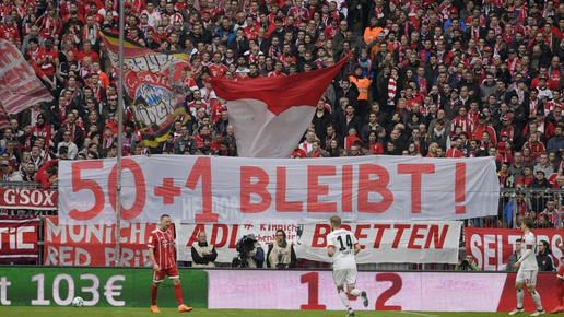 До 1998 года немецкие футбольные команды считались некоммерческими организациями и, следовательно, находились в руках болельщиков, которые выплачивали ежегодный взнос. Исключениями являлись “Байер” Леверкузен и “Вольфсбург”, которые были связаны с заводом (“Bayer” и “Volkswagen” соответственно). С 1998 года, чтобы повысить экономическую конкурентоспособность немецкого футбола, Федерация пошла на преобразование клубов в общественные или частные компании, но с условием, что 50% + 1 имущества должно обязательно оставаться за фанатами...