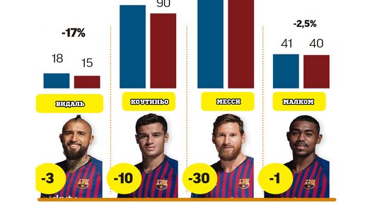 Общая стоимость игроков «Барселоны» не сильно изменилась, несмотря на плохой конец сезона