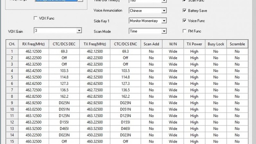 Радиостанция Baofeng BF 888S без экрана, имеющая 16 каналов, программируется с использованием компьютера. Я собрал информацию о частотах, на которых работают эти радиостанции, включая Baofeng BF77S и Baofeng BF 888S, которые функционируют на заводских заданных частотах. На фотографии ниже представлены частоты раций, установленные с завода. Например, на первом канале радиостанции Baofeng 888 частота составляет 462,125 МГц, а её тоновый сигнал — 69,3 Гц...