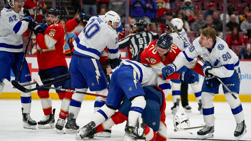 136 штрафных минут: хоккеисты «Тампы» и «Флориды» снова устроили драку. На этот раз — в матче регулярки