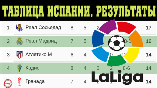 Чемпионат Испании по футболу (Ла Лига). 8 тур. Результаты, таблица и расписание.