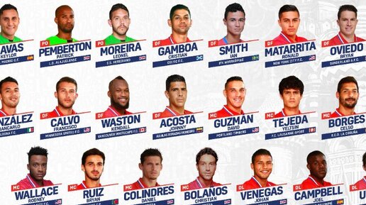 Оскар Рамирес, главный тренер сборной Коста-Рики, объявил список 35 игроков, попавшие в расширенный список. Голкиперы: Кейлор Навас («Реал»), Парик Пембертон («Алахуэленсе»), Леонель Морейра («Эредиано»). Защитники: Кристиан Гамбоа («Селтик»), Ян Смит («Норчепинг»), Рональд Матаррита («Нью-Йорк Сити»), Брайан Овьедо («Сандерленд»), Оскар Дуарте («Эспаньол»), Джанкарло Гонсалес («Болонья»), Франсиско Кальво («Миннесота Юнайтед»), Кендалл Уостон («Ванкувер Уайткэпс»), Джонни Акоста («Агилас»)...
