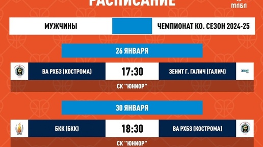 В Костромской области стартует чемпионат по баскетболу среди мужчин. Как сообщает региональная Федерация баскетбола, в сезоне 2024-2025 примет участие шесть команд. Они сыграют два круга. Участниками чемпионата стали «Зенит» из Галича, БК «Медведи» ЯМР из Ярославля, а также четыре команды из Костромы...