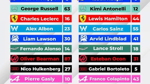 McLaren 1️⃣ Ландо Норрис На правах чемпиона мира забрал себе единичку. Раньше хотел выступать под номером 46 в честь Валентино Росси, но, чтобы избежать обвинений в копировании, остановился на четверке. 8️⃣1️⃣ Оскар Пиастри В картинге гонялся под номером 11, но однажды, сменив команду, понял, что две единички заняты. Наобум поменял первую цифру на восьмерку и с тех пор гоняется под 81-м номером. Red Bull 3️⃣Макс Ферстаппен Считается, что Макс хотел трешку с момента дебюта в F1 еще в 2015-м. Тогда она была занята Даниэлем Риккьярдо...