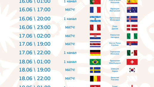 С 14 июня по 15 июля в России пройдет чемпионат мира по футболу 2018 года — впервые в истории наша страна принимает у себя мундиаль. Раз уж до Красноярска ЧМ не доедет, мы составили для вас расписание трансляций всех матчей...