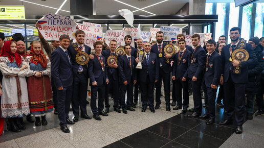 В Москве вечером 15 декабря встретили триумфаторов чемпионата мира по боксу. Наша сборная завершила первенство в Дубае на первой строчке в медальном зачете. Всего спортсмены взяли 13 наград, из них семь золотых. Это исторический рекорд. Также в копилке пять серебряных медалей и одна бронза. Россияне бились в 12 финальных поединках из 13 возможных. "На данный момент это мое самое большое достижение, очень рад этому. Запомнилось, что наша команда выступила так хорошо, на чемпионате мы заняли первое командное место", – сказал чемпион мира по боксу в весовой категории до 63,5 кг Илья Попов...