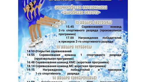 12 января в Йошкар-Оле начался II этап Кубка России по фигурному катанию на коньках. Эти состязания, а также Всероссийские соревнования «Марийские встречи» в дисциплине «синхронное катание» продлятся три дня. В них участвуют спортсмены из 12 российских регионов: Санкт-Петербурга и Москвы, Татарстана, Ямало-Ненецского автономного округа,...