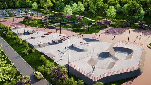 Также там будут площадки для баскетбола, волейбола и стритбола, тренажеры, скейт-парк и экстремальная велотрасса памп-трек.