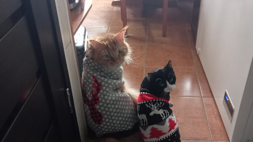 Добрый вечер, мои хорошие! С пятницей! В Омске неожиданно выпал снег. Утром, открыв шторы, обнаружили за окном заснеженный пейзаж, и весь день метёт без остановки. К зиме, конечно, мы ещё не были готовы. Но это поправимо. Главное — правильный настрой и тёплые свитерочки. У пушистых их выбор огромный. Тиша сегодня против свитерочка бастовал. Походил немного и сразу снял. Даже не успела сфотографировать. Одевать обратно не стала — это дело сугубо добровольное. Степан свои свитер носит весь день, и он очень любит тёплые свитерочки...