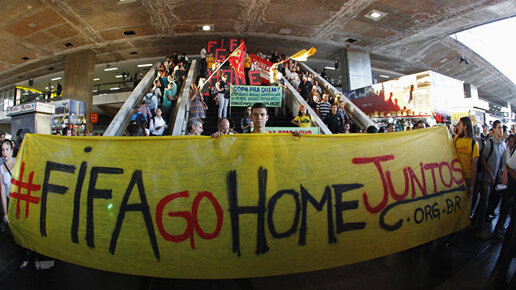 Не пригодная для проведения такого масштабного турнира страна - Бразилия. Отдавать турнир стране из Южной Америки изначально гиблое дело,проблемы с преступностью и протестами являются тому причиной.Почему? 1.Вышеупомянутые проблемы с протестами в стране. В период с 2013 по 2014 год по стране проходили митинги, захлестнувшие крупные бразильские города. В более чем 100 городах люди выходили на улицы с протестами против проведения Чемпионата Мира в их стране. Главным лозунгом протестующих были слова - FIFAGoHome...