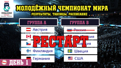 Молодёжный ЧМ по хоккею 2022. Результаты 1 тура. Расписание. Таблица.