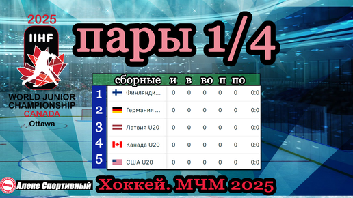 ЧМ по хоккею 2025 (U20). Результаты. Таблица. Расписание. Кто вышел в 1/4?